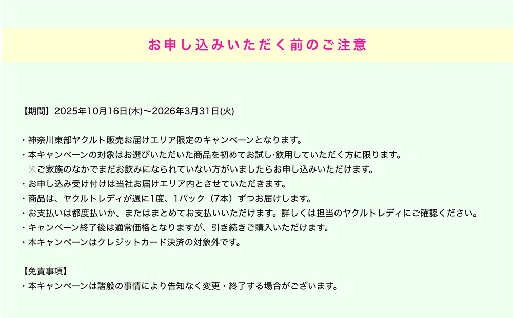 ※本キャンペーンは神奈川東部ヤクルト販売のお届けエリア限定の企画となります。