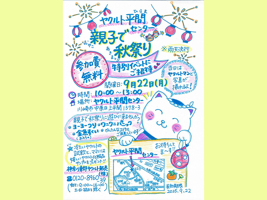 神奈川東部ヤクルト販売平間センターでは、9月22日(月)に親子で楽しめるイベントを開催します。